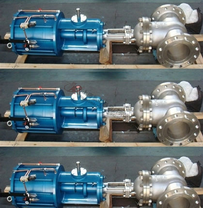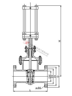 1、本閥主要由閥體、閥蓋、閘板、閥桿、密封圈、雙層氣缸及其活塞、活塞桿、隔板連同緩沖機構、手動機構、氣動-手動轉換裝置和閥蓋填料裝置等部分組成。