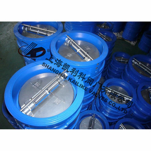 H76H、H76W、H76X對(duì)夾雙瓣式止回閥由閥體、閥瓣、閥桿及彈簧等零件組成,采用對(duì)夾連接。由于閥瓣的關(guān)閉行程短,并且有彈簧加載,可顯著減少水錘現(xiàn)象。該閥主要適用于城市、工業(yè)及高層建筑給水、排水管網(wǎng)上。由于其結(jié)構(gòu)長(zhǎng)度比一般止回閥短,對(duì)有安裝空間限制的場(chǎng)所最為適用。